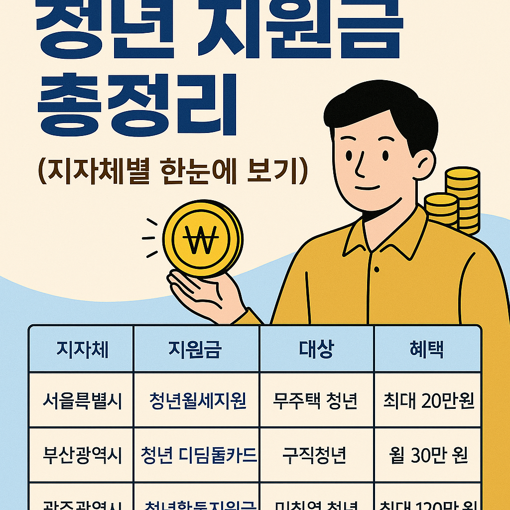 그래서 오늘은 2025년 기준, 청년을 위한 주요 지원금 제도들을 전국 지자체별로 정리해드립니다. 내 상황에 맞는 지원금을 빠르게 찾을 수 있도록 핵심만 쏙쏙 뽑아봤어요.